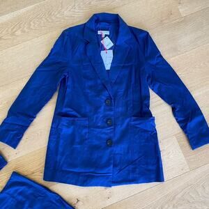Free People 3 Piece Shorts, Crop Top and Blazer Set in Blue