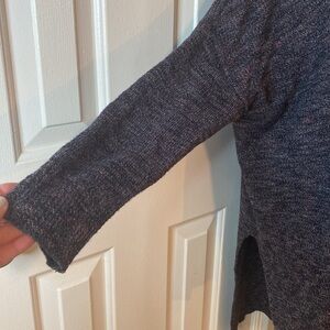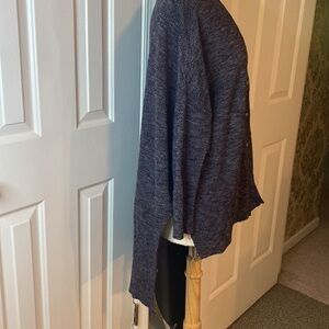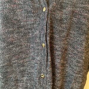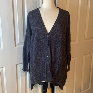 Cozy oversized cardigan sweater with 3 snaps in the front. Shorter in the front and longer in the back — see pics for measurements. EUC, no flaws or stains.