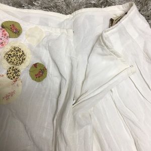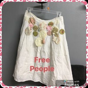 Adorable Free People skirt- side zipper closure. Embroidered floral arrangement on front! Off white