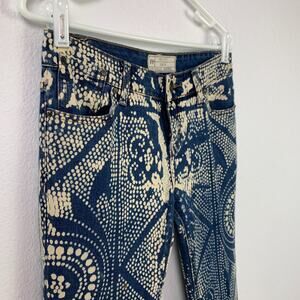 Free People 61855 Discharge Bali Print Indigo Boho Festival Flare Jeans 26