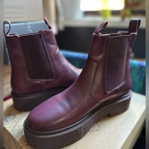 Free People burgundy chunky style boots. Beautiful, super soft leather boots. Unfortunately, not for my feet.