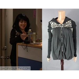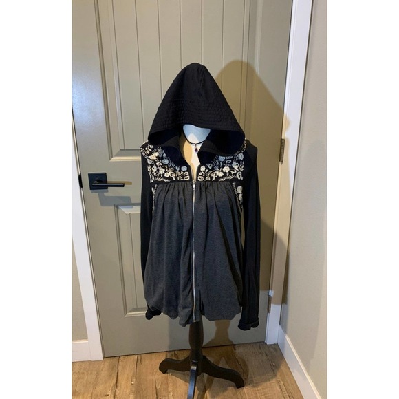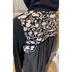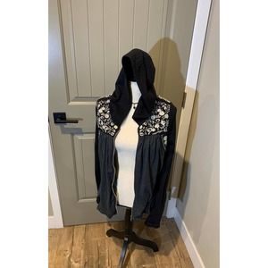 Free people black floral embroidered, full zip hoodie. Light wear. As seen on Lilly from the show “How I Met Your Mother”. Size Medium.