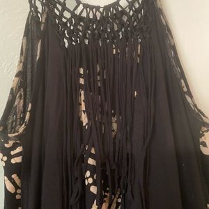 Super cute fringe detail in front and back! Front fringe is longer in the front. Athletic cut for how the straps fall on the body.