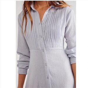 Free People light blue long sleeve button down maxi shirt dress with half slip and hidden pockets size S
