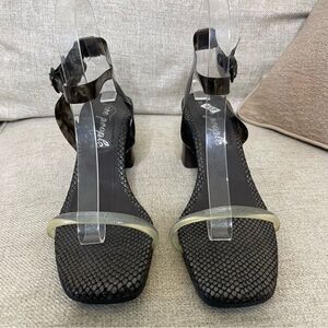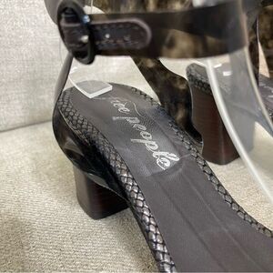 Free People 7.5 Black Sandal Square Toe Heels Strappy Jelly Block Snakeskin