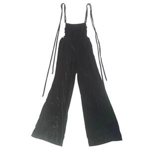 Free People 90s Forever Lace Up Crushed Velvet Wide Leg Jumpsuit EUC Black Small