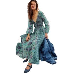 Free People A New Way Maxi Dress Teal Combo Size Medium