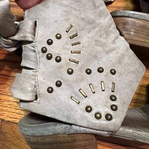 Free People A.S. 98 Gray Leather Low Heeled Sandals w Rivets Zippers & Bows