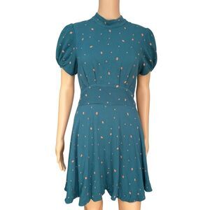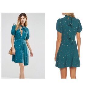 Free People Abbie Printed Mini Dress in Teal Reversible Size 6