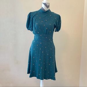 Free People Abbie Printed Mock Neck SS Mini Dress 4