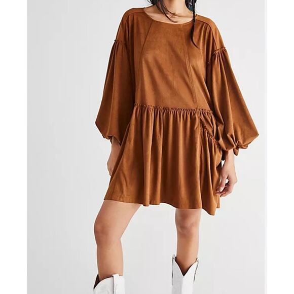 Free People Abbie Vegan Suede Mini Dress Women's Size Large Brown Boho