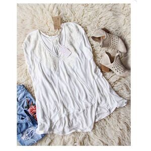 #FreePeople #AbigailTee #BohoTop #LaceTop #EmbroideredTop #VNeckTop #WhiteTop #BohemianStyle #FestivalFashion #Boho #Hippie #Romantic #Feminine #Lace #Embroidery #CapeBack #AsymmetricalHem #Draped #Flowy #Relaxed #Casual #Layering #Spring #Summer #VintageInspired #70sStyle #Retro #Trendy #Stylish #XS
