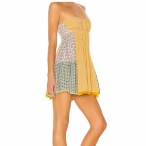 Free People Across The Sea Strapless Yellow Patchwork Tunic Mini Dress medium