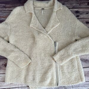 Free People “Addicted To You” Wool Blend Moto Jacket Small Ivory Sweater