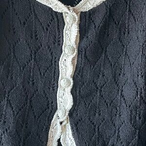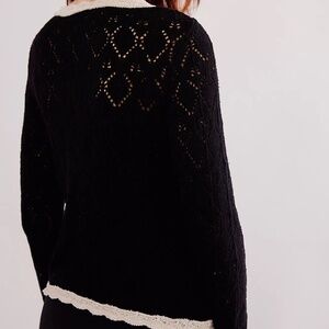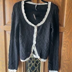 Free People Adelene Cardigan, Black Cream Combo, Large, NWT