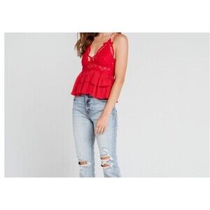 Free People Adella Cami Cherry Red Lace Ruffled Tank Top Size Small NWT
