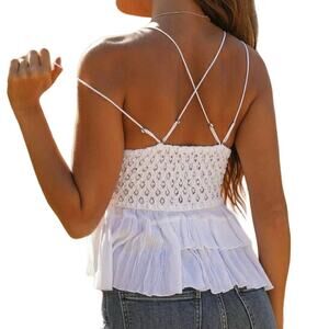 Free People Adella Cami Crochet Lace Flowy Tiered Crisscross White Extra Small New with Tags (NWT)
