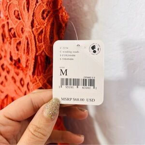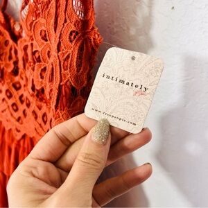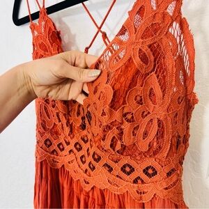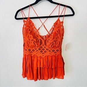 Free People Adella Cami Orange Lace Ruffled Tank Top NWT M
