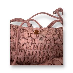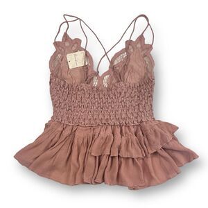 For a touch of bohemian elegance, the Free People Mauve Camisole is your go-to piece. Perfect for casual outings or cocktail evenings, this cropped top features delicate crochet detailing and a charming ruffle hem that adds a playful twist to your ensemble. The cotton blend material with a lace overlay offers both comfort and style, while the adjustable spaghetti straps ensure a perfect fit. Embodying a carefree spirit, this sleeveless camisole is a springtime staple that pairs effortlessly with your favorite jeans or skirts. New with tags.