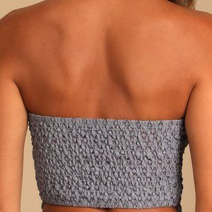 Our favorite boho-inspired crafty bralette, now in a so sultry corset silhouette. This strapless style features the crochet lace you know and love with defined cup seams and frilly scalloped trim. RUNS SMALL. Smocked, stretchy back; Tube neckline; Lined.