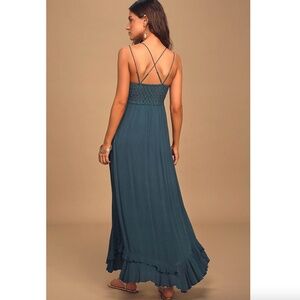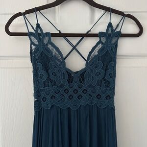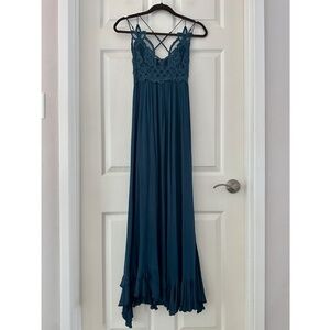 Free People Adella Lace Maxi Slip Dress Turquoise Women’s Size Small
