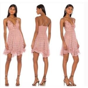 Free People Adella Mini Dress Layered Pink Dusty Rose Burnout Lace Hippie Sz Sm