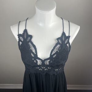 Free People Adella Mini Slip XS Dress Boho Chic Lace Tiered Ruffles Black Boho