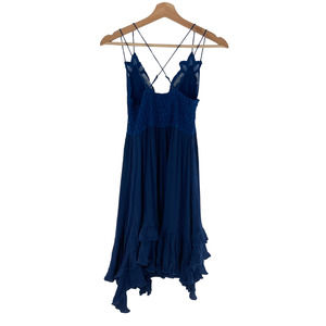 Free People Adella Slip Dress Blue Lace Ruffle Strappy Beach