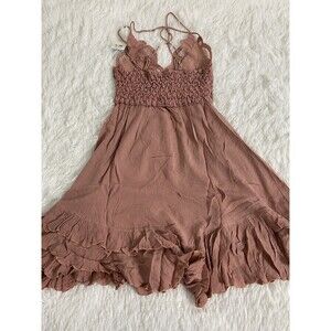 Free People Adella Slip Dress in Rose Mauve Pink Lace Smocked Back Flowy S
