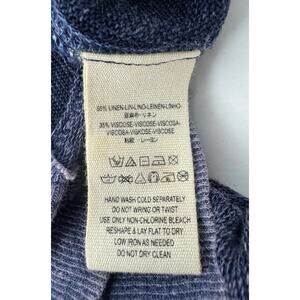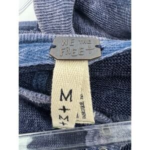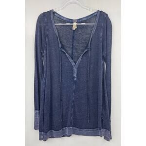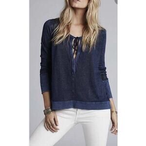 Free People Affogato Hacci Top Indigo Linen Blend Split Neck Womens Size M