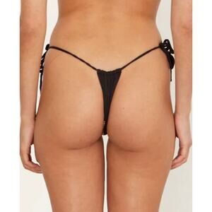 Free People Aila Blue Black Palm Eco Rib String Bikini Bottom M NWOT