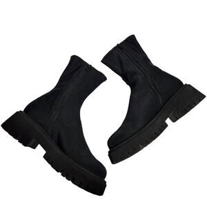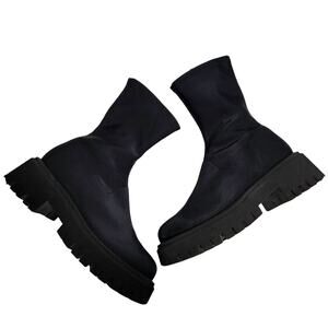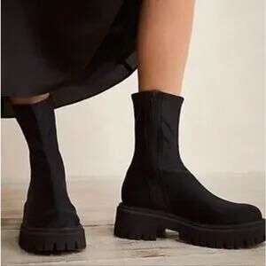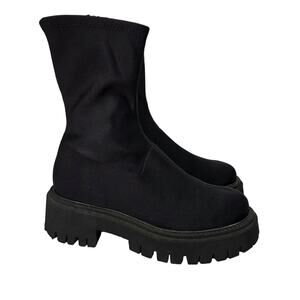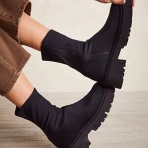 Free People Alaina Black Scuba Stretch Sock Boot Size 39 Chunky Lug Goth Grunge