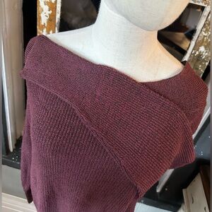 Free People Alana Burgundy Off Shoulder Slouchy Long Sleeve Top Sz Medium