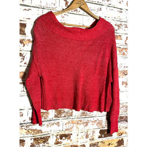 Free People Alana Pullover Linen Cotton Blend Red Knit Off The Shoulder Sweater