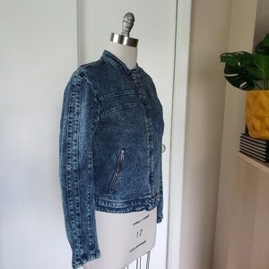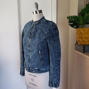 Design/Details: Free People moto-inspired premium quality denim jacket. Design features intricate pleated details, logo branding, front zipper closure with high neckline and side pockets for that cool and timeless design. Not available in stores!