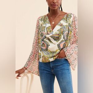Free People Aleena Boho Printed Scoop Neck Blouse Size Small EUC