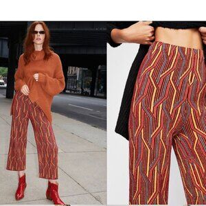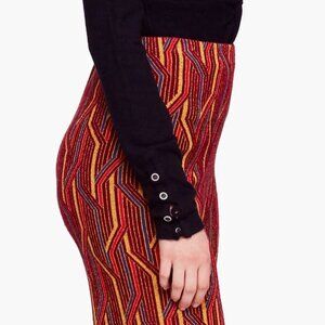Free People - Alina Pull-On Wide Leg Pant Trousers | XS | Wine Multi Print