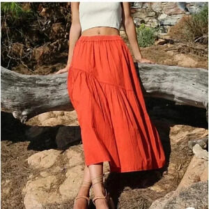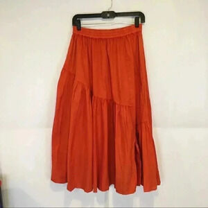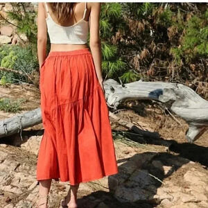 Go from femme to fierce in this effortless midi skirt designed in a high-rise, asymmetric tiered silhouette.