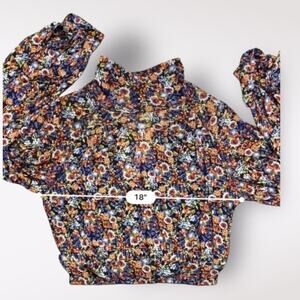 -Free People All Dolled Up Floral Mesh High Neck Cropped Long Sleeve Womens M Boho