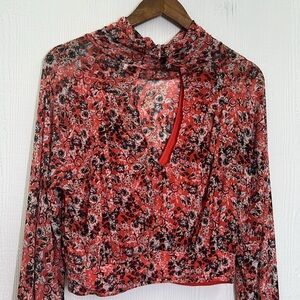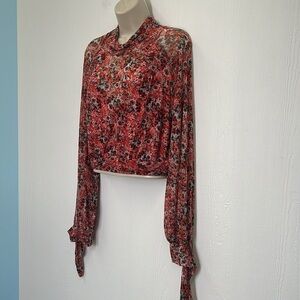 Free People - All Dolled Up Red Floral Print Mesh Long Sleeve Top Size Medium
