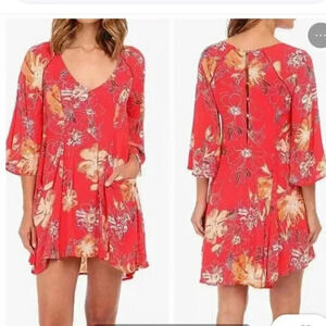 Free People All Eyes on You Mini Swing Dress Floral Red Size 2