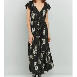Floral maxi dress from own modern-boho brand Free People is all you need to feel ultra femme. It features an all-over floral print, sash-tie waist, and tiered maxi skirt. Complete with a v-neck, short sleeves, and a button-down closure to the reverse.