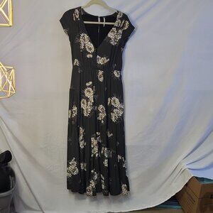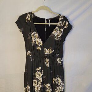 Free People All I Got Floral Maxi Dress Green Daisy Print Eyehook Button Front Tag Size: 4