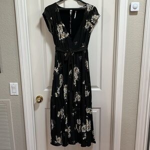 Free People All I Got Midi Maxi Dress Tiered Deep V Floral Boho Sz 0