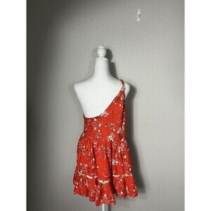 Free People All Mine Mini Dress Red One Shoulder Size XS Medium Linen A2