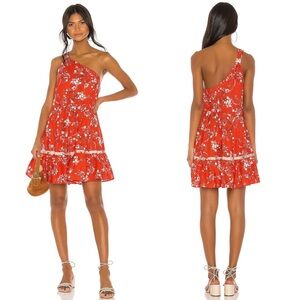 Free People All Mine Minidress Cherry Red Floral One Shoulder Size XS