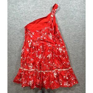Free People All Mine Red Floral One Shoulder Mini Dress S Linen Blend