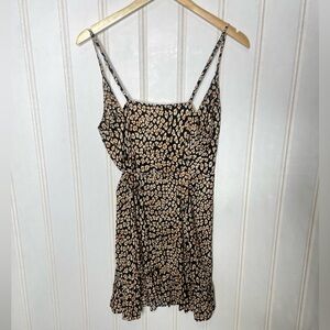 Embrace your wild side with this chic leopard print wrap mini dress. Featuring a flattering fit and spaghetti straps, it's perfect for any occasion.