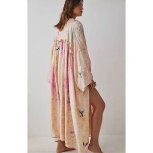 Free People All Night Robe Butterfly Embroidered Kimono Duster/ Size S