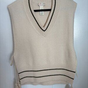 Features: V-neckline, side tie detailing, ribbed striped trim, lower back hem, dropped armholes